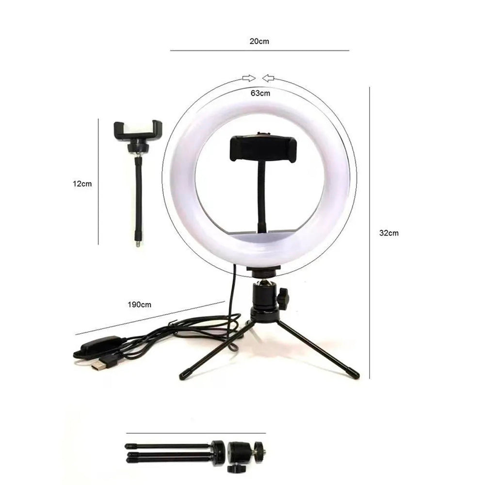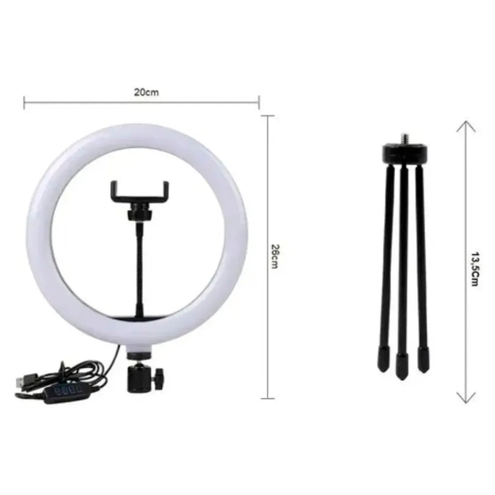 Anel de Luz 8 Polegadas com Tripé e Suporte para Celular – Ring Light para Gravações e Streaming