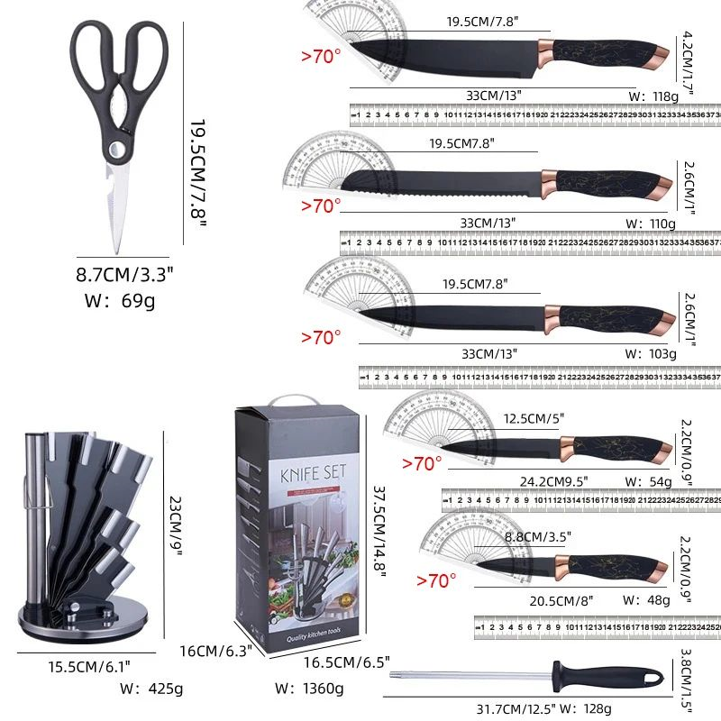 If you value practicality, elegance, and safety in the kitchen, the 7-Piece Black Knife Set with Holder and Multipurpose Scissors is the ideal partner for your daily life.