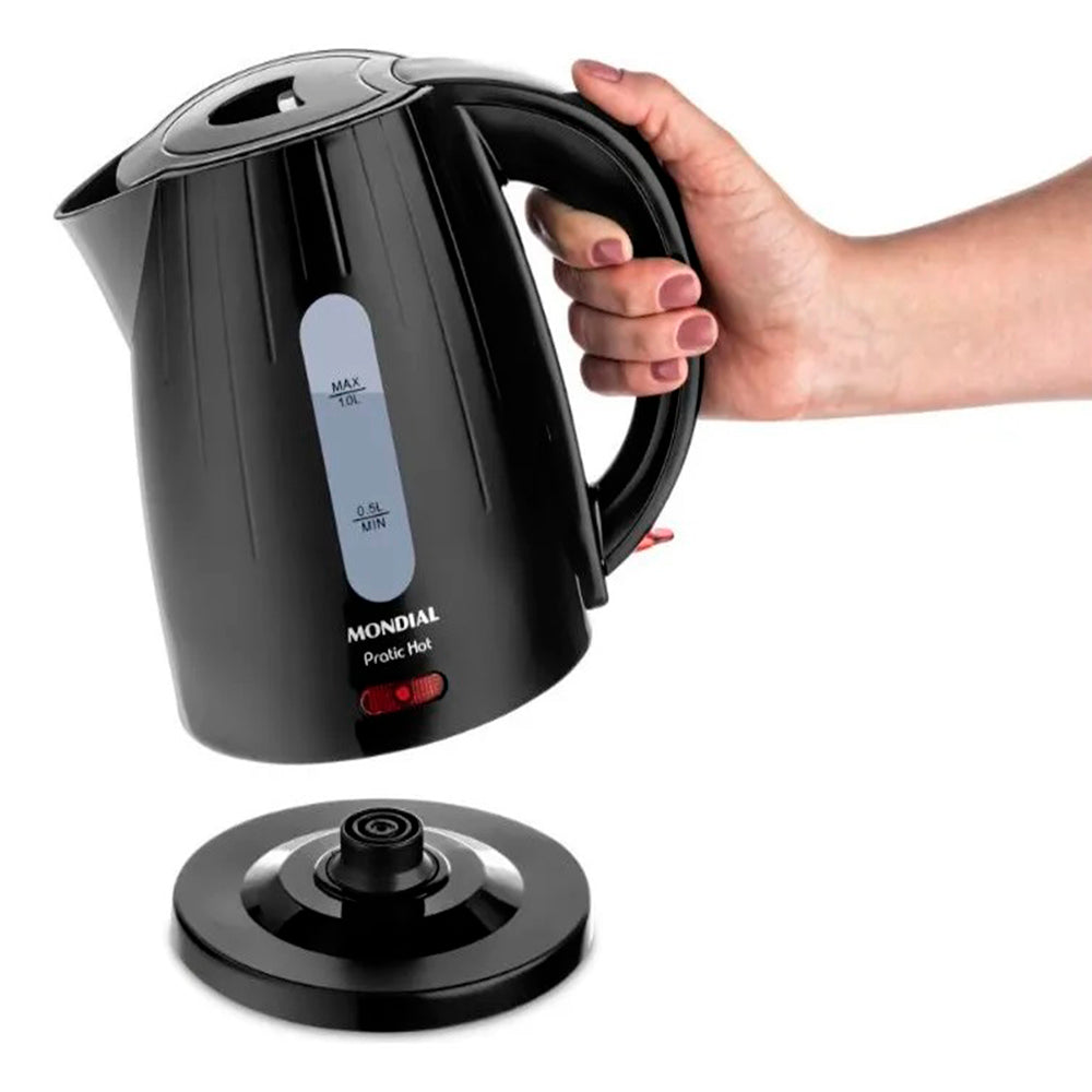 Simplify your routine with the Mondial Pratic Hot Electric Kettle . Compact, efficient, and quiet, it quickly heats water for coffee, tea, yerba mate, soups, and much more. Ideal for everyday use, with a 1-liter capacity , automatic shut-off , and a removable jug for elegant table service.