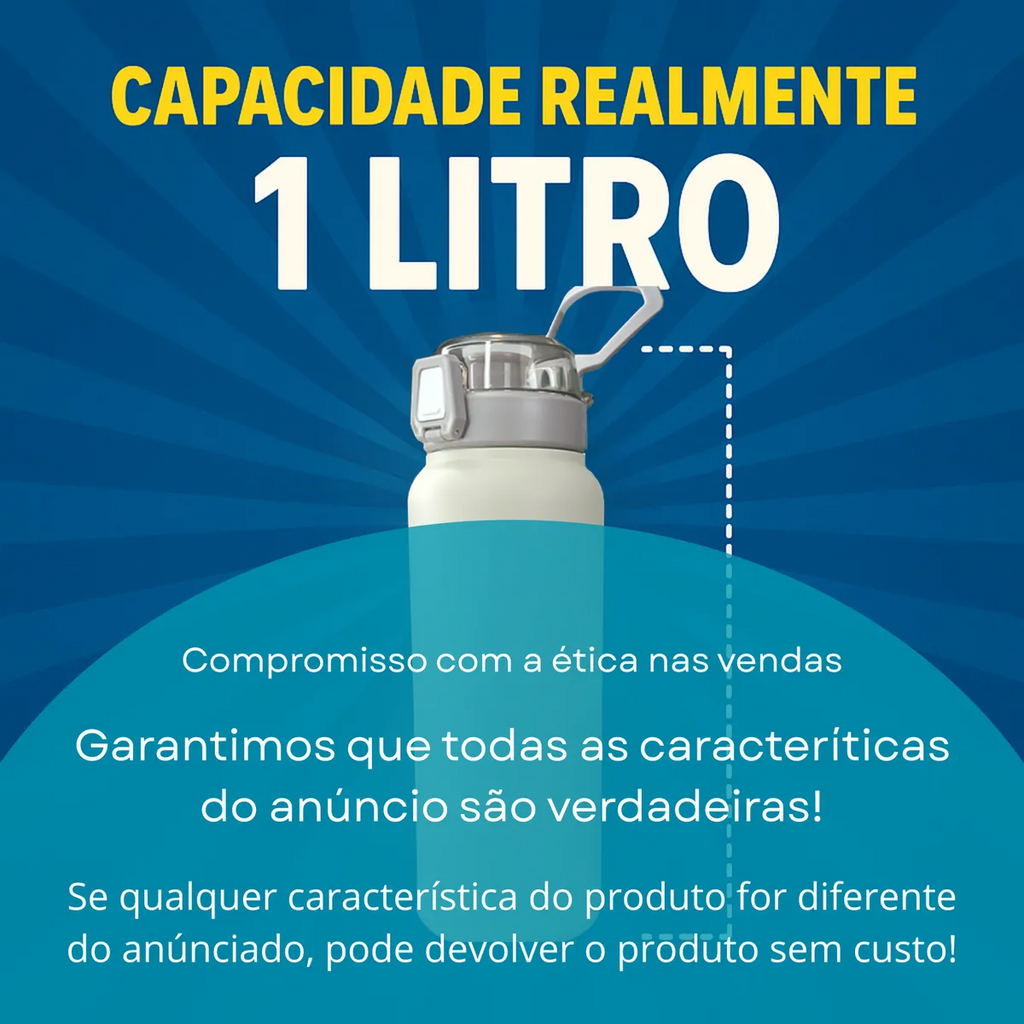 Keep your drinks at the ideal temperature for much longer with the 1 Liter Stainless Steel Vacuum Insulated Bottle , designed for those who demand quality, safety, and high thermal performance . Ideal for everyday use, work, travel, the gym, or outdoor activities.
