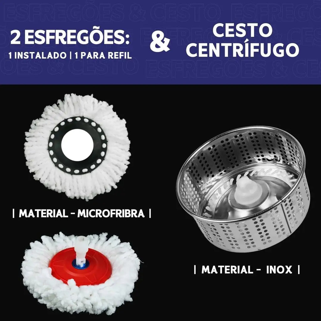 O Mop Giratório NYBC foi desenvolvido para tornar a limpeza da sua casa mais rápida, higiênica e confortável. Com sistema giratório de alta rotação, balde com cesto interno em inox e dispenser de sabão integrado, você terá tudo o que precisa em um único produto.