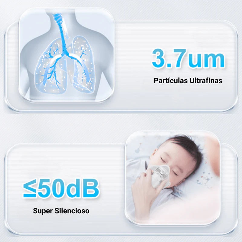 "Você já sentiu a frustração de precisar de um nebulizador para aliviar sua respiração, apenas para ser incomodado pelo barulho ensurdecedor? Chegou a hora de dizer adeus ao incômodo e dar as boas-vindas ao alívio respiratório em silêncio."