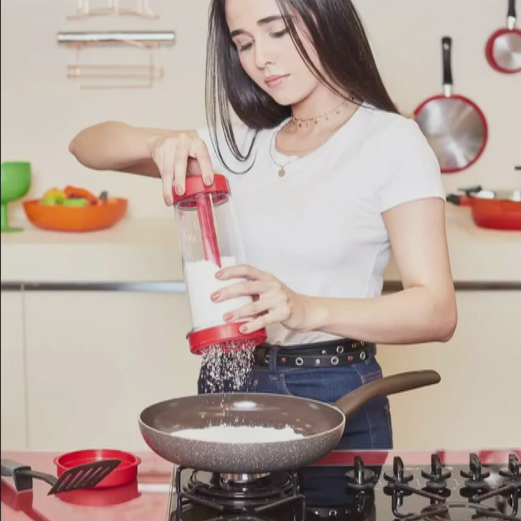 "Transforme sua cozinha em um paraíso de tapiocas perfeitas com a Tapioqueira Portátil Giratória Goma de Tapioca - a chave para um sabor autêntico em segundos!"Peneira De Farinha Giratória De Mão, Copo Doméstico, Utensílios De Cozimento De Cozinha, Peneira De Farinha Semi-Automática De Plástico